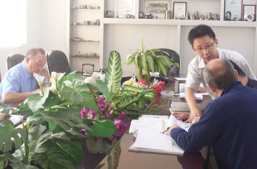 2007年9月24日法國客戶來公司考察,洽談轉(zhuǎn)盤軸承項(xiàng)目。